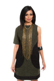 Gray high waist, Harem style pant with deep, exposed zipper trimmed pockets. No waist band to help reduce bulk at waist. Made of a light weight wool blend, these stylish pants will also keep you warm on those cool days and nights! The cuffed pant leg makes it uber stylish especially paired with the right pair of heels or heeled boots.